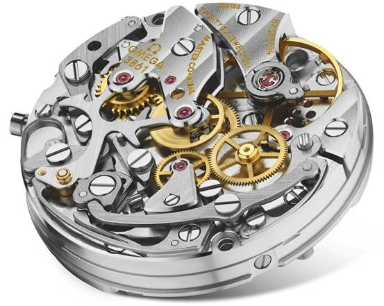 后者正是那款让 OMEGA 超霸腕表经受住 NASA 严苛考验的 321 机芯的延伸版。要将当代工艺悉数放进二十多年前的机芯尺寸中,要通过至臻天文台认证,还要增加更多的零件,其难度可想而知,这款机芯最终也是耗费了整整 4 年研发才问世。