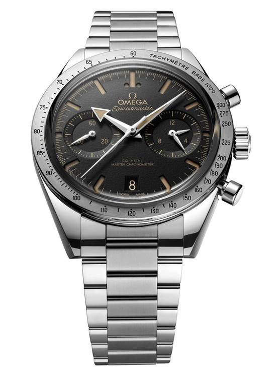 超霸的三眼计时变成了两眼,三点钟位置的小表圈融合了 12 小时和 60 分钟计时功能。