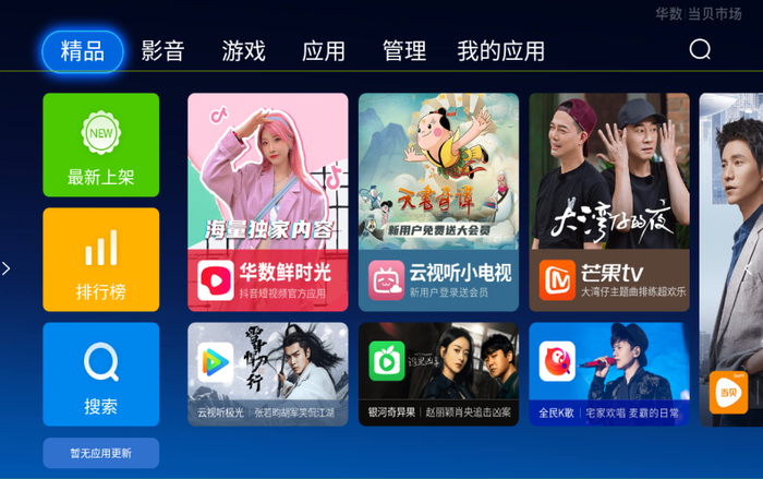 用户可通过当贝市场自由下载安装 APP ,观看影音娱乐内容。无需连接电脑等终端设备,只需一台投影机即可观看影音大片。操作简单,适用于办公、酒吧、店铺、家庭等多种场合。