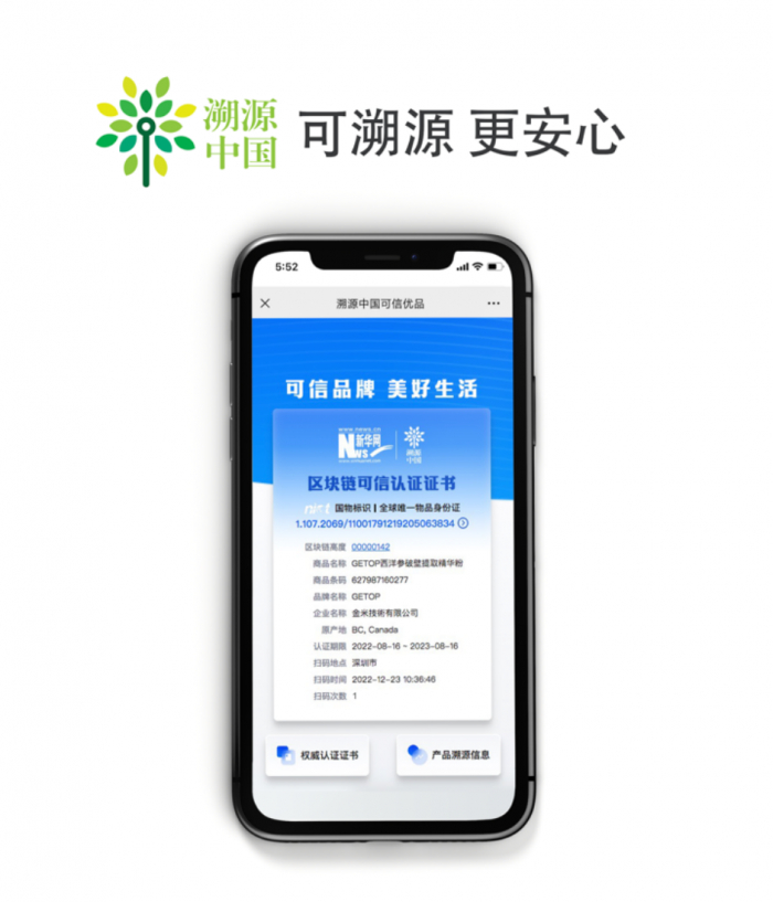 一直以来,新华网高度重视5G、物联网、区块链等新技术及其带来的深度产业变革,其联合中科院共建溯源中国·国家物联网标识根节点,打造“溯源中国”区块链溯源云平台,定位于“美好生活连接者、可信品牌塑造者、高质量发展助推者”,提供“一物一码”物联网标识“物品身份证”,为企业打造可信品牌,增加诚信美誉,实现长效经济效应,提供赋能解决方案,构建起优质产品与消费者之间的直通桥梁。