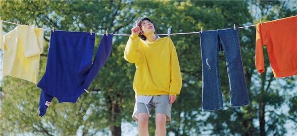 开场画面中,女孩儿挂在晾衣绳上“晾晒”,文案说道:闲鱼上的年轻人,真的很爱晒,还......只晒不卖。接着展示起了年轻人“只晒不卖”的故事: