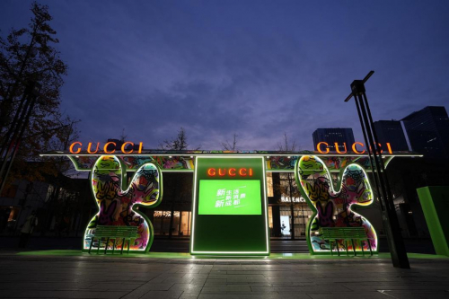 12月28日,Gucci(古驰)新春兔子候车亭于成都太古里全球首发亮相,再次彰显成都创建国际消费中心城市的实力。