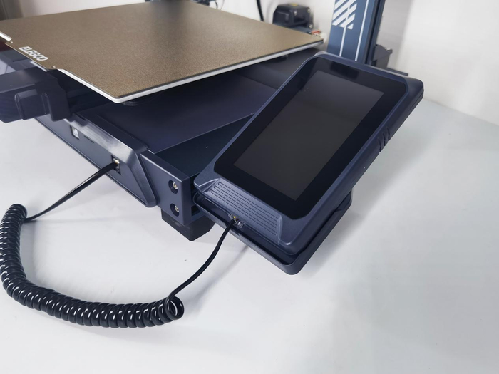 ELEGOO Neptune3 Pro搭配了一块4.3英寸竖屏的彩色电容触摸屏,通过弹簧电话线连接,可手持操作也可以固定在机座上操作。