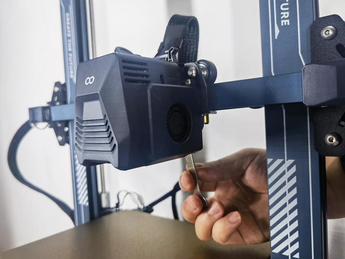 紧接着,在ELEGOO Neptune3 Pro上,检查下喉管、平板上的稳固情况,用扳手固定住。还有检查下X/Y轴的皮带张紧调节器,可通过旋转手拧螺母调节皮带松紧度。