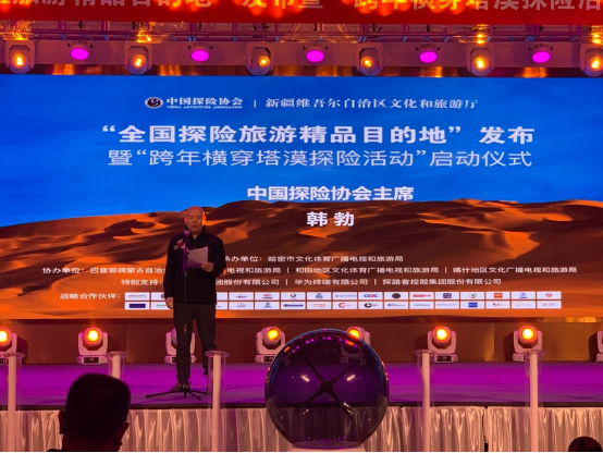 中国探险协会主席韩勃表示,“跨年横穿塔克拉玛干沙漠探险活动”意在弘扬西域文化,打造独树一帜的古国探秘之旅和记录之旅。新疆的探险旅游资源具有世界顶级品质,中国探险协会联合自治区文化和旅游厅致力于充分发掘资源,使它既能成为展现新疆特色旅游资源的窗口,助力新疆乡村振兴和经济社会发展,也能让世界看到一个真实可信、稳定和谐的新疆。