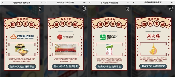 近期,一场由小糊涂仙牵头,蒙牛、周六福、白象等国民品牌共同参与的“穿越25载的宝藏”品牌联动引起了热烈的反响。活动以H5线上游戏的互动形式,既展现了国民品牌的家国情怀,也唤起了消费者内心深处的情感共鸣,以“情怀×跨界”创新双营销的方式,再次刷新了情怀营销的新高度。