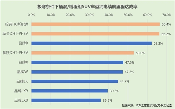 本次测试结果表明,在-30℃至-20℃的极寒环境下,搭载了长城汽车DHT混动系统的第三代哈弗H6 DHT-PHEV、魏牌摩卡DHT-PHEV,打破持续低温导致纯电续航里程受影响的问题,一举包揽了新能源汽车冬测插混/增程SUV车型纯电续航里程达成率冠亚军,真正做到了冬日出行不惧严寒的便捷驾乘体验。