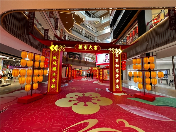 丰台大悦春风里周年庆及大悦中国开门红活动期间,在有限的商业空间内通过充满爱的创意表达形式,于项目室内中庭开启了“萬市大吉”春风悦市集,设置有花灯、福字、版画等一系列年味十足的节庆元素,为消费者带去耳目一新、重回儿时热闹的节庆互动体验。