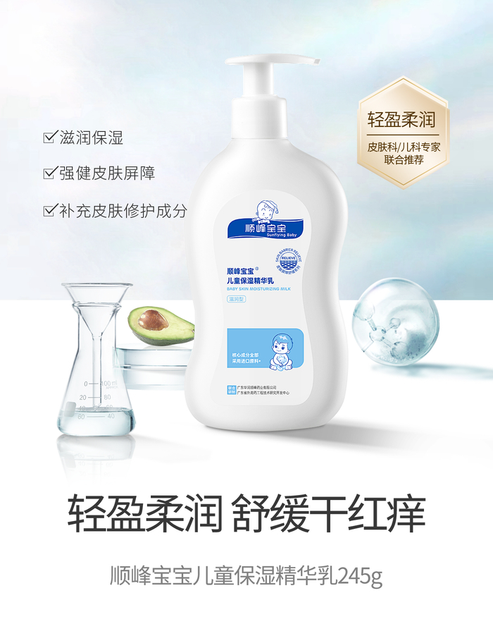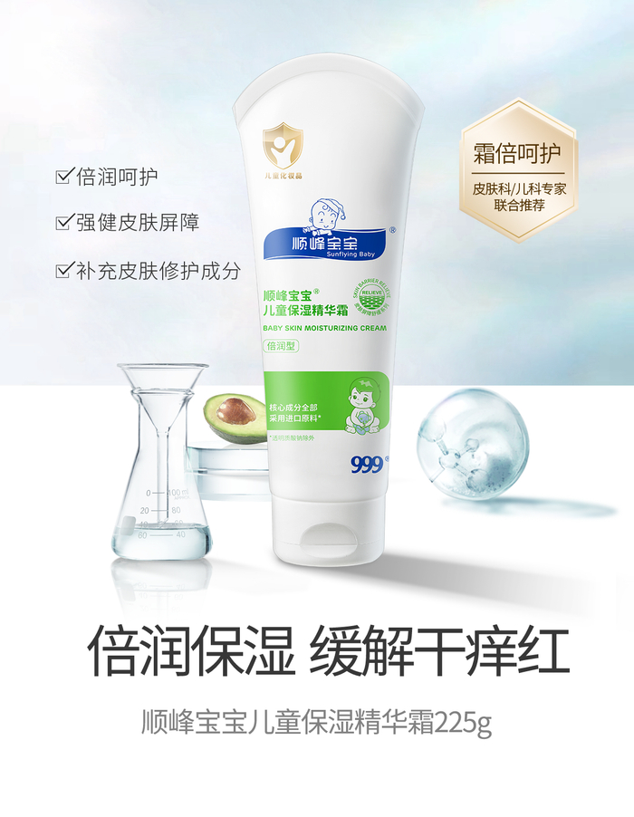 顺峰宝宝儿童保湿精华霜就是从婴幼儿的皮肤需求出发,为湿疹、干敏肌肤宝宝的专门研制的保湿产品,精华霜一瓶可以全身使用,包括面部、口周、和身体四肢。