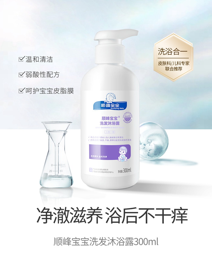 顺峰宝宝洗发沐浴露低泡温和,特别添加赋脂成分,连续使用有助于清除或减少表皮污和微生物,配方中原料使用的种类和浓度都通过了蛋胚测试评估,同时采用远高于国家化妆品生产标准的要求来控制生产线的环境洁净程度。顺峰宝宝对品质的内控经过多家三方检测机构的检测认可,可以说是临床用于舒缓特应性皮炎患者皮肤最优最安心的选择。