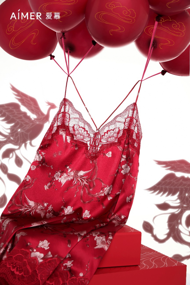 2022年冬,AIMER爱慕携手MUKZIN密扇,重磅推出全新「好事将近」系列红品。本次合作创新诠释中国吉祥寓意的古老传说“凤栖梧桐”,聚焦中国“喜”文化,将象征祥瑞的凤凰图腾巧妙重新设计演绎,采用全新的国潮视角,携手为智美女性带来“喜迎好事将近”的新年美衣。