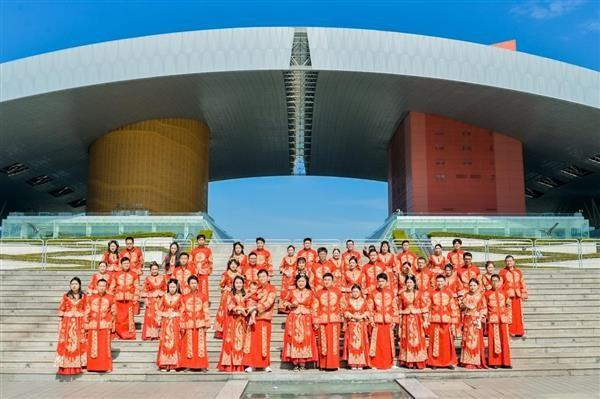 11月20日下午,到达婚礼场地后,以梦幻的大鹏湾为背景,象征祥瑞红火的舞狮表演过后,22对新人身着中式礼服,在喜庆温情的旋律中,缓步走上幸福红毯,步入会场中央,执梳头礼、合卺礼、执手礼、敬茶礼、夫妻对拜等浪漫庄重的中华传统婚礼仪式。这样的仪式不仅能让年轻人感受婚姻和谐之美,还能引导他们在未来的家庭建设道路上担起婚姻家庭之责任。