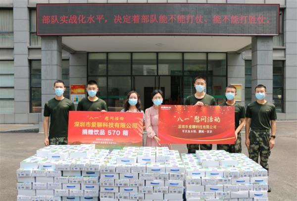 向特殊群体捐献物资,彰显爱聊科技社会责任。2022年“八一”建军节,在深圳市社会捐助中心联合深圳市慈展会发展中心开展的“八一”慰问活动,爱聊科技等多家企业作为爱心企业代表,先后为武警广东省总队执勤支队送去防暑降温类“清凉”物资,总价值超13万元。