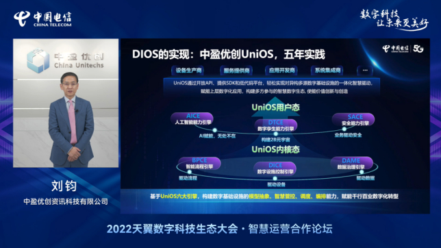 12月29日下午,2022天翼数字科技生态大会智慧运营合作论坛在线上召开。中盈优创CEO刘钧受邀出席,分享了“创新数智服务能力,共建智慧数字生态”的探索与实践,并首次公开阐述了打造UniOS数字基础设施操作系统的路径与思考。
