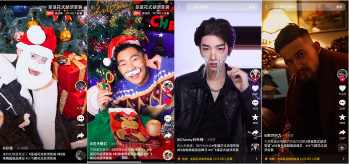 其次,为更精准地撬动抖音站内核心目标受众,飞科抖音电商超级品牌日携手飞科剃须刀品牌大使许凯,发起品牌挑战赛#小飞碟花式胡须变装,邀请粉丝及用户一起盘出年轻范儿。同时抖音电商超级品牌日基于品牌挑战赛,联动多位站内头部达人打造热点话题#圣诞花式胡须变装,创意演绎胡须的多种玩法,传递年轻人的时尚态度,最终话题登上抖音种草榜TOP9、挑战榜TOP11。