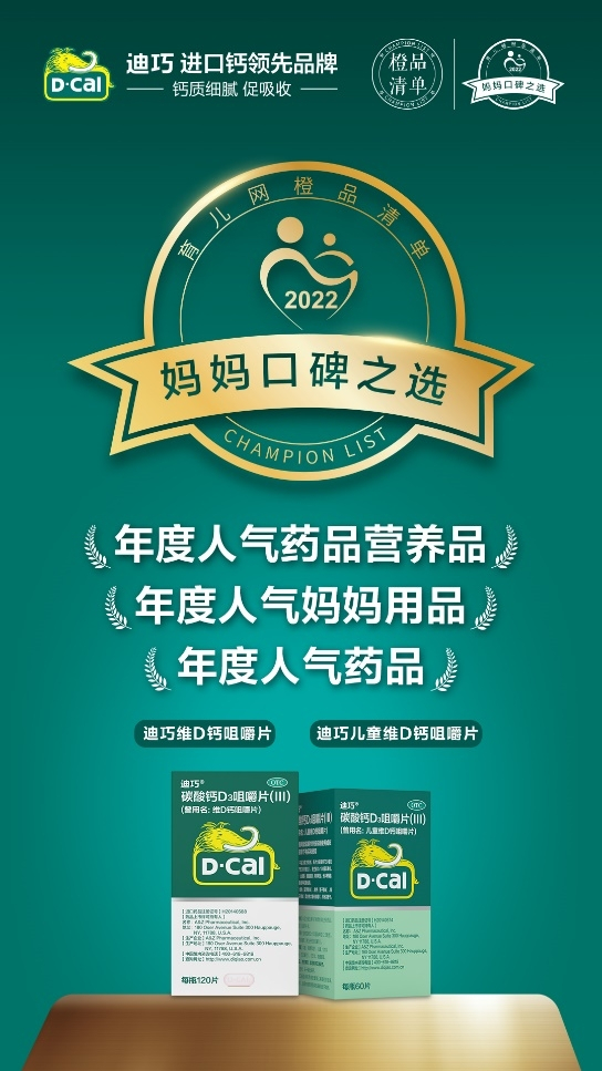 近日,由590332位妈妈真实有效参与的2022育儿网第八届橙品清单妈妈口碑之选新鲜出炉。进口钙领先品牌迪巧一举斩获“宝宝用品 年度人气药品”和“妈妈用品 年度人气药品营养品”两项口碑大奖。据悉,这已经是迪巧连续7年入选育儿网橙品清单妈妈口碑之选。