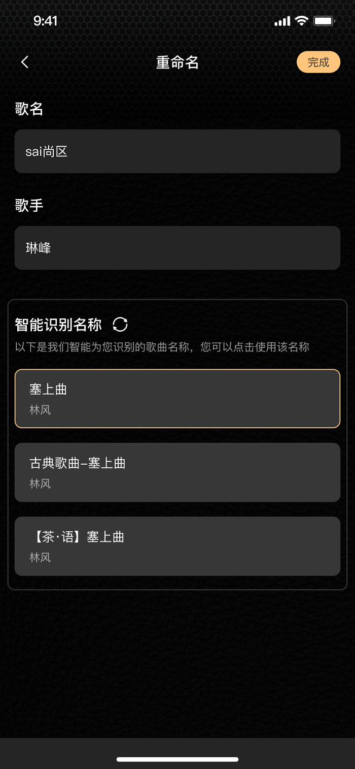 用户可通过「智能识别歌曲名」功能,快速识别和显示正确的音乐作品信息。