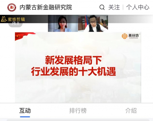 燕谷坊集团创始人、董事长兼CEO何均国受邀作为演讲嘉宾线上亮相,并作主题为“新发展格局下对行业发展的机遇”的分享。
