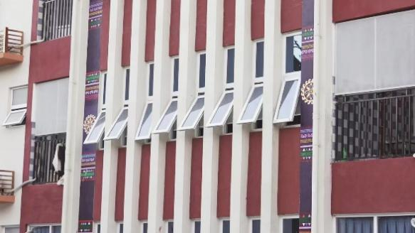 除此之外,花西子楼在外观设计上也融入了大量彝族元素,墙面上的彝族图腾、屋檐下的羊角、彝族特有色彩的窗框……使得整栋大楼充满了彝族特色。