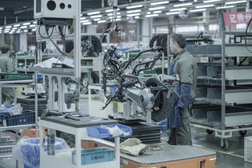 在下线仪式现场,首批下线的Real 5T正在贯通过最后的整车检测环节。据生产车间负责人介绍,茵未生产线采用行业先进的物流和生产设备,其基础生产环境为无极制造产线,延续了隆鑫与无极“精工、精控、精美”的严苛品控标准。隆鑫无极工厂是重庆市“5G+智能物联创新应用示范工厂”,在制造行业中处于领先水平并具备示范效应。