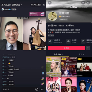 2022年8月,抖音直播联合中央民族乐团发起“DOU有国乐”计划,打造民乐演出第二舞台。通过该计划,中央民族乐团百名艺术家将入驻开播,带来百余场线上音乐会。同时,抖音直播将面向民乐演奏者、民乐乐团开放合作,提供资源扶持、专业合作等多方位支持。由此,民乐主播有机会与中央民族乐团艺术家连线交流、同台演奏。直播打赏也正成为线上演出的“新门票”。赵聪感慨,一场传统音乐会观众往往仅有千人,而直播所带来的关注度远不止于此。她希望通过与抖音直播的合作普及推广民族音乐,让中国民族音乐走向世界。