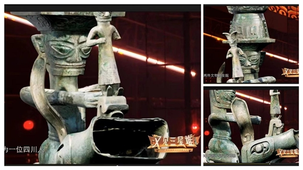 值得一提的是,本次晚会还全球首发了一件之前未曾公开亮相的三星堆文物,四川卫视通过虚拟技术,突破修复技术壁垒的限制,首次让顶尊跪坐人像与大神兽合体亮相,让更多观众见证三星堆文物本真的模样。三星堆博物馆副馆长冉宏林介绍,这两件文物来自不同的坑,经过前期清理、修复和研究,确认他们俩是可以拼在一起的。此次全球首发的合体亮相,让全国观众都对这件文物有了更加清晰的认识,也让三星堆文物的奇趣之处更加直观的展示出来,对古蜀国文化传播有重大意义。