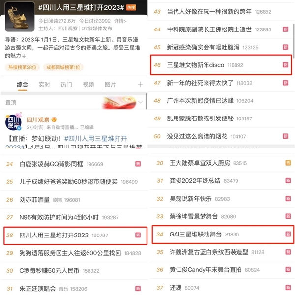 通过全媒体平台的创新传播,让新年演唱会的舞台无限延伸,让三星堆文化传播拓宽到全网范围,引发全网好评讨论,花开天下国韵文化传承的名片再一次全网出圈。