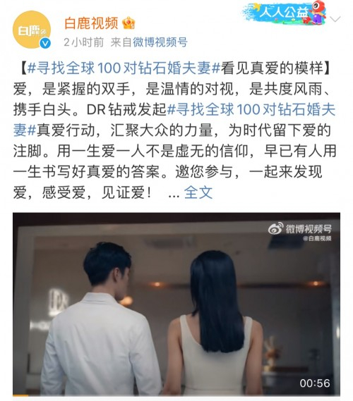 可以看到,今年DR钻戒全球真爱行动「寻找全球100对钻石婚夫妻」规模全面升级,覆盖到海内外,联动线上、线下传播。