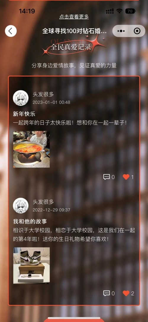 通过凝聚社会各界的力量,DR钻戒构建起了极具号召力的真爱信仰共同体,扩大了「寻找全球100对钻石婚夫妻」真爱行动的影响力,活动机制的巧妙设计也将“用一生爱一人”的真爱理念通过全民记录、见证渗透在每个人的生活日常里,引导全民主动积累、分享「真爱模样」,将见证真爱成为一种生活方式,助推DR钻戒在每个人的心中稳稳站稳真爱见证者的心智。