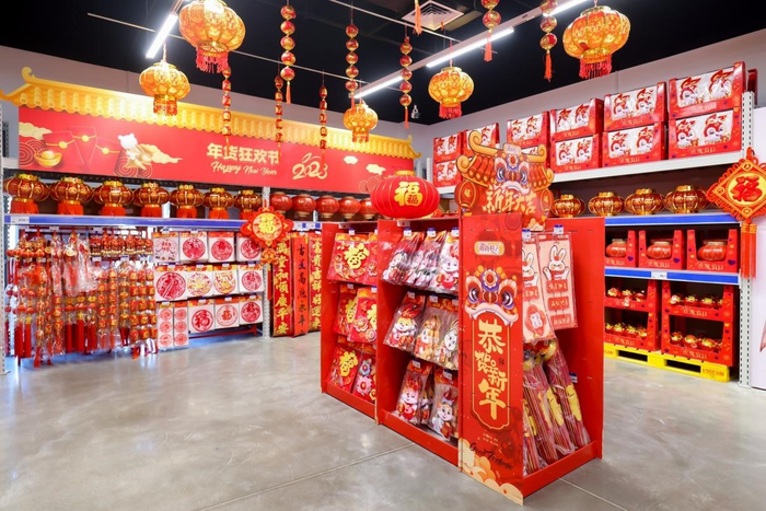 因为临近春节,走入门店便看到各式各样的高品质年货堆头,装饰得整个门店新年气氛浓厚。到店消费者更是能享受到新店开业优惠叠加年货促销的双重福利。