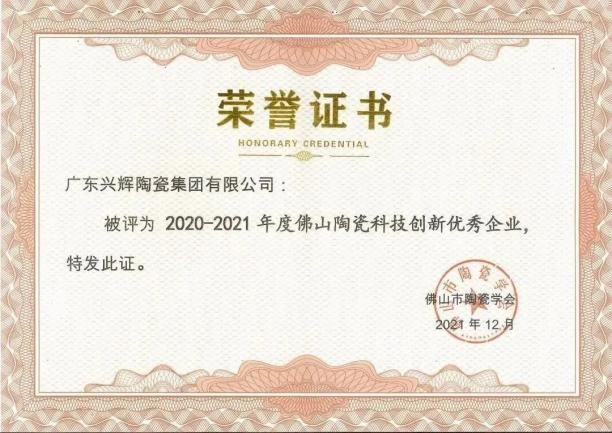 兴辉瓷砖被评为“佛山陶瓷科技创新优秀企业”