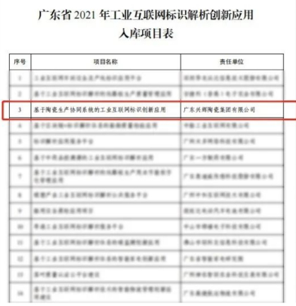 兴辉瓷砖入库工业互联网标识解析创新应用项目