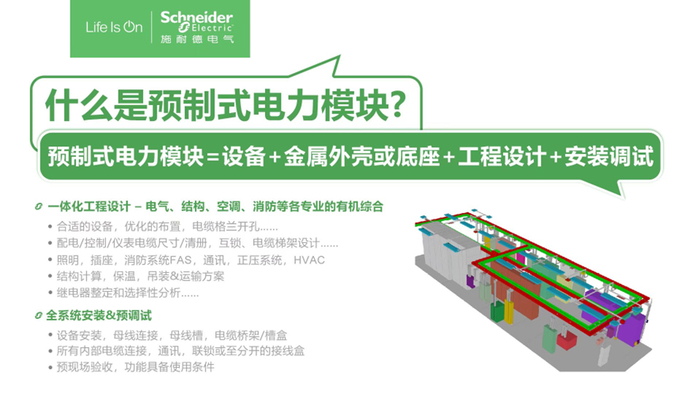 为了实现快速复制,施耐德电气进一步对电力模块统一了规格及标准,推动装配式数据中心模式的发展与落地,并配套“高中低压”一体智能化监控运维,实现了从设计到落地交付,再到运维的全生命周期覆盖,完美凸显了施耐德电气在托管数据中心发展新趋势下的行业价值与差异化能力,也必然将推动大规模数据中心的集装箱交付与电力方舱方案在全球各地的发展。