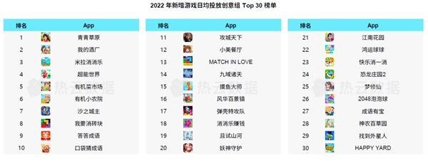 三,《青青草原》与《捕鱼大咖》分获新\旧游买量Top30榜单头名,联盟媒体渠道受头部买量游戏关注