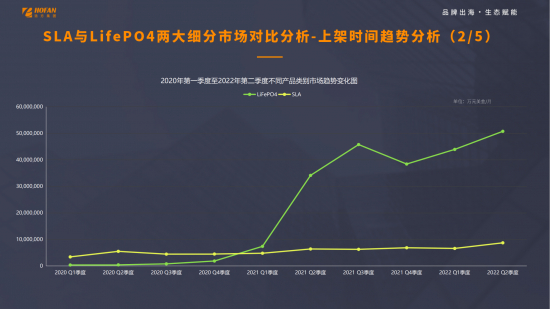 与此同时,结合上架时间和近两年两者的销售额变化数据来看,SLA电池起步早但近年增长较为平缓;而LifePO4电池则大部分于2020年上架,体量增长较为可观且增速明显高出SLA许多。其中,LifePO4电池有70%的品牌均来自于中国。