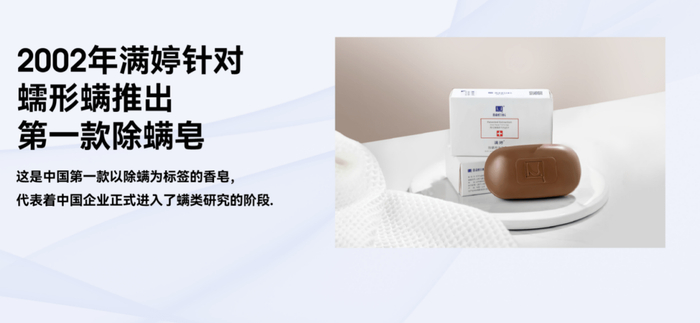 自2002年推出第一块除螨皂、开创国内日化领域除螨品类开始,满婷一直在除螨领域精耕细作,取得了国内外多项专利,可以说是消费者心目中值得信赖的除螨专家,