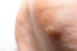 3、跖疣,发生于足底,外伤和摩擦是基本诱因,跟足部多汗也有一定的关系。初起为一细小发亮的丘疹,后逐渐增大,表面角化,粗糙不平,灰褐、灰黄或污灰色,呈圆形,境界清楚,周围绕以稍高增厚的角质环。好发于足跟、跖骨头或趾间受压处。
