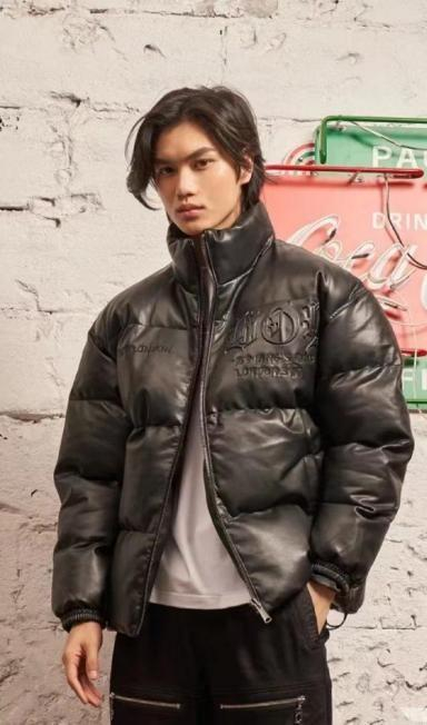 如果喜欢更利落一点的款式,黑色立领羽绒服推荐给你。经典的简约黑色风格,朋克元素的金属拉链,合身偏宽松的剪裁透着松弛大方,让内搭的选择空间也更大。搭配休闲长裤、马丁靴就是一个酷酷的大男孩。