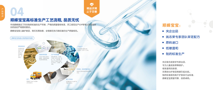 华润顺峰很早就注意到了这个问题,着力于研发适合中国宝宝特应性皮炎的护理产品。华润顺峰成立于1969年,属于华润三九央企子公司,五十年来深耕皮肤治疗领域,为了寻求更好的皮肤护理技术,满足儿童皮肤护理方面未被满足的需求,顺峰宝宝位于佛山的研究中心——广东省外用药工程技术研究开发中心不断接受前沿产品开发和皮肤护理知识培训,以保持其创新活力。同时产品配方均由上海新华医院皮肤科主任姚志荣教授审定,专家与研发团队为了共同的目标深入交流,紧密合作。