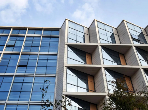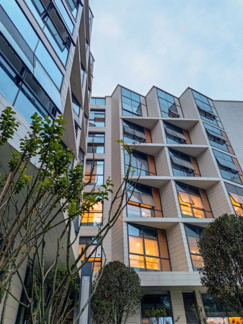“成都市打造康养城市品牌,本项目作为成都市核心区城市型医养结合项目的标杆”。首先建筑的外立面设计上就需要从纷纷攘攘的建筑群当中树立自己的形象与特色,我们在设计上主要体现建筑外立面硬朗的线条,极富韵律感的转折,大面采光窗结合米色陶板,精致又耐看的立面结合木色铝板,增添了一抹温馨与自然。