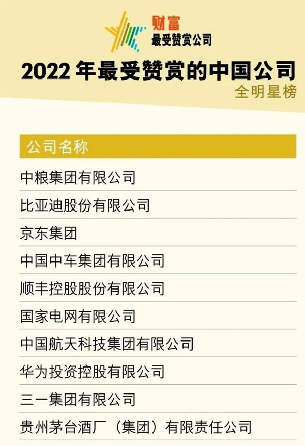 2022年12月27日,《财富》(中文版)发布 “2022年最受赞赏的中国公司榜单”,京东在Top50全明星榜单上排名第三,行业榜单排名第一。