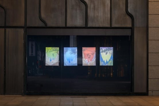 与之内容的延伸,为中国之“变”辨证法的情境版,配合机械文明来完成。参展作品《兴会》延续了这一概念,机械装置缓速运动,前后景观在错位中叠现。