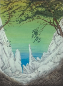 绘画部分通过十八世纪德国早期浪漫主义画家弗里德里希的《吕根岛上的白垩崖》(Kreidefelsen auf Rügen,Chalk Cliffs on Rügen)的风景为原型的一组作品(四件),将山川树木以世界艺术史的多样画法予以不断置换,在移花接木的闪回过程中,寓万变不离其宗,借西方观众熟悉的形象,阐述中国哲学思想,“一生二,二生三,三生万物”,同时表明古老的绘画传统如何回应人类文明共同体的当代课题。