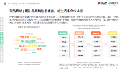 精致的生活方式少不了下午茶的点缀:巴斯克、肉松小贝、碱水烘焙、广式甜水……各式各样的美味甜品成为吃得精致的代名词。不同地域又有着不同的甜品消费偏好,东西南北各有一张TOP 5甜品榜单。