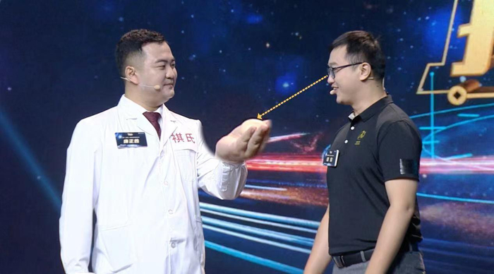 科学家们的表演也是搞笑爆梗现场,来自氦星光联科技(深圳)有限公司的项目代表谭俊一上来就上演顶级废话文学“粉里透着红,红里又透着白的,白里又透着粉的鸡蛋”。通过激光技术,超级倍速了的“机器人”一边向太空发送鸡蛋一边不禁感叹“如果用这个超丝滑的网速去开黑的话,我恐怕连自己的队友都会干掉。”此时一旁的两位队友们表示瑟瑟发抖。搞笑的表演又不失专业,每一位队员将自己的创业项目和技术都巧妙的融入“太空鸡蛋”这个天马行空的项目里。