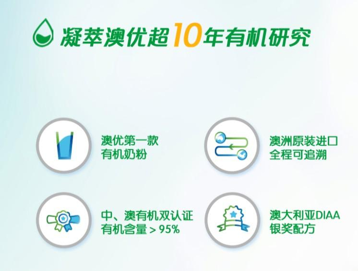 据资料显示,淳璀有机奶粉挑剔全球有机奶源,严苛管理的有机牧场加上严苛的标准,更少的人工介入、严格的全程管控,真正从源头为宝宝提供纯净、原生的有机好奶粉。秉承有机奶粉的品质标准,淳璀机奶粉严禁使用化肥、农药、激素等合成物质,这样长大的有机奶牛产出的牛奶,品质更加绿色安全,蛋白质、不饱和脂肪酸等营养成分含量也都更高。据悉,澳优淳璀有机奶粉的有机配料含量达95%以上,给宝宝带来更加纯净、天然营养。