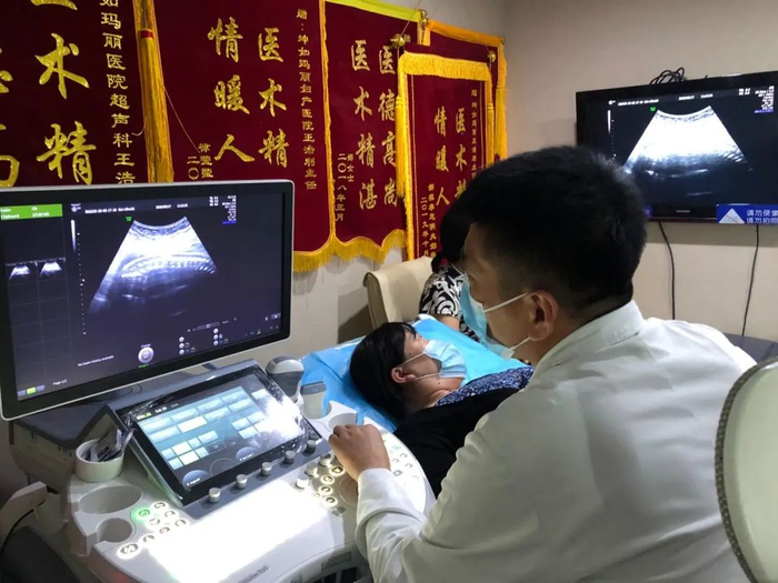 在漆黑的小屋里,当看到孕妈妈开心的笑脸与胎儿健康,是他们最开心的时刻。