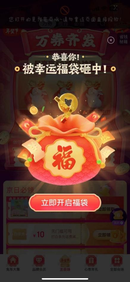 每晚8点抽福袋最高中2023元 京东年货节“万券齐发”超值开启