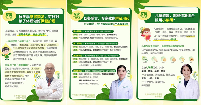 例如专家团在线解答儿童感冒的4个阶段应如何辨证用药,让家长更深入地了解儿童感冒不同阶段的护理方法,能科学用药不冒失,更好的呵护孩子健康!