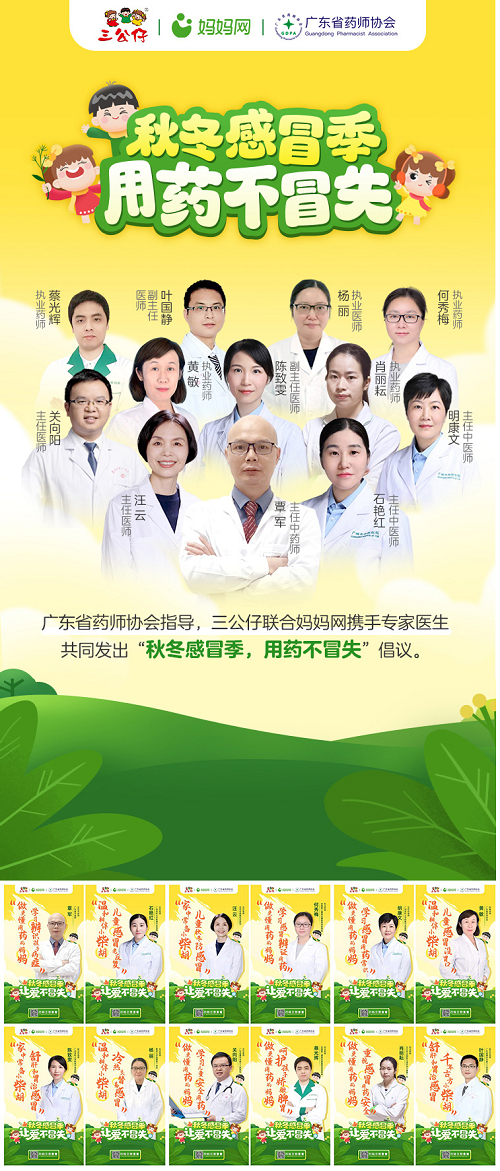 三公仔联手妈妈网、广东省药师协会发起的“秋冬感冒季,让爱不冒失”公益活动,不仅是向广大家长分享儿童感冒安全用药的方法,更是呼吁各位家长:呵护孩子健康,辨证用药才是明智之举,不做冒失用药的妈妈。